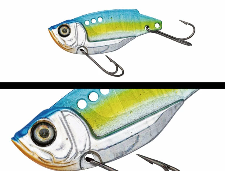 By adopting a titanium plate,ย Adusta succeeded in further lowering the center of gravity of a typical blade bait by securing a greater difference in specific gravity from the lead part at the bottom.
