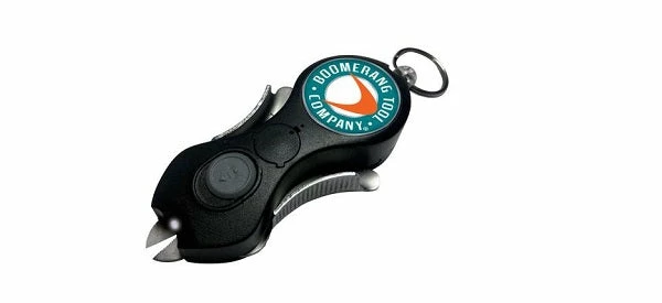 Boomerang Tools “The Snip” is a must-have tool for any angler; the  3.5″ retractable, heavy-duty line cutter cleanly cuts up to 50-lb. test fishing line, quickly and easily. The Snip is compact, lightweight, extremely durable, and features a precise, corrosion-resistant, Grade 420 stainless steel blade that slices through monofilament, fluorocarbon, and even braid. A spring-loaded retractable “tether” allows you to attach The Snip to your boat—or on your clothes—and extend to 36″. When you’re through cutting, just squeeze the stainless steel handles on the side of the casing to lock the blades in the safe position.