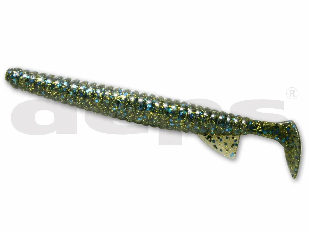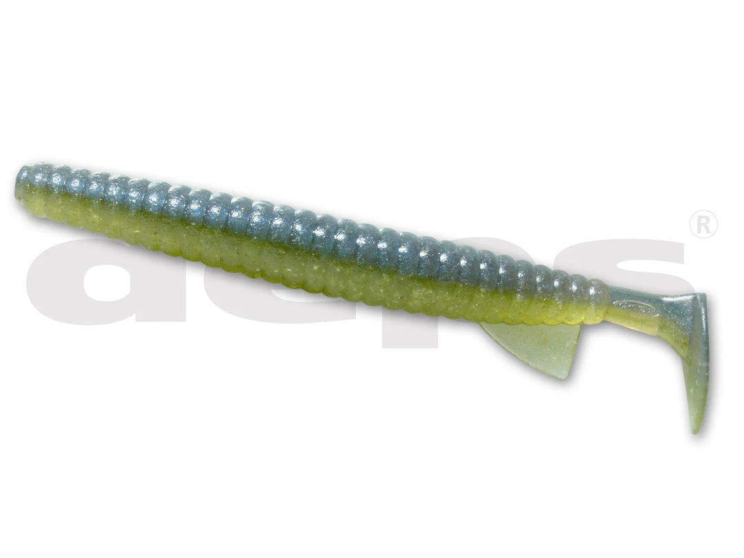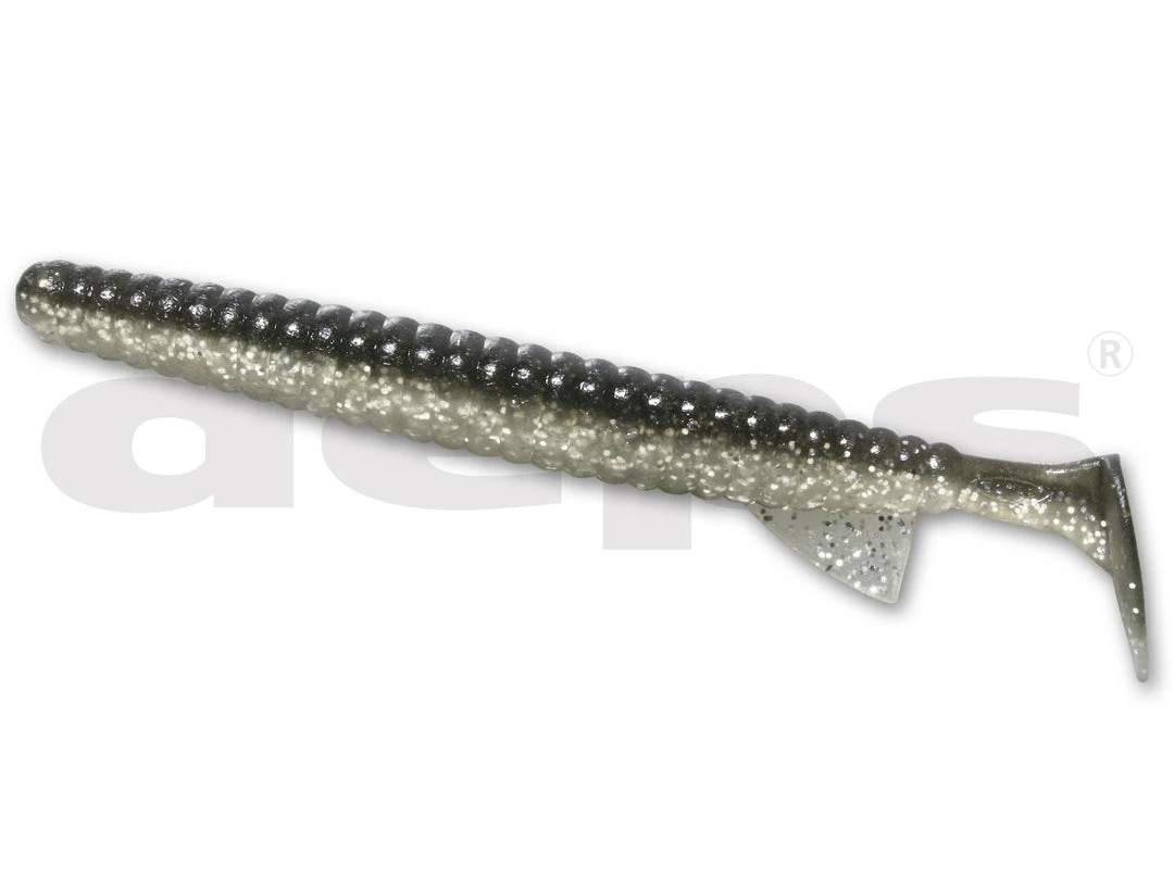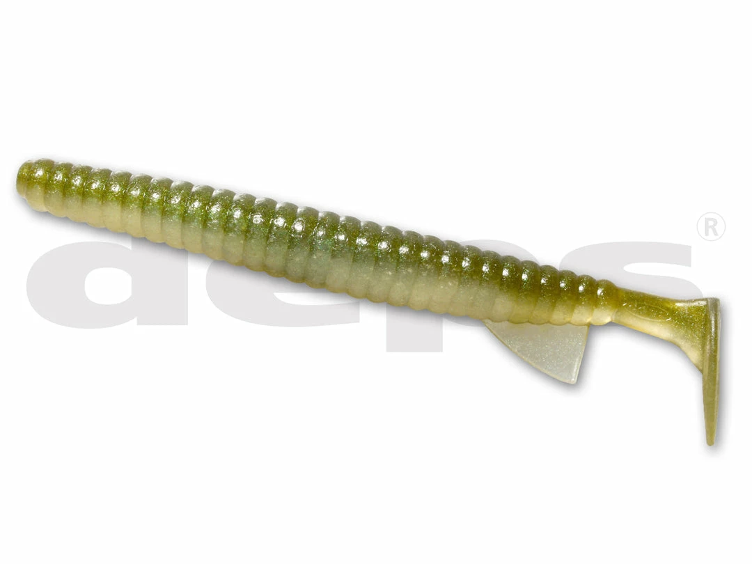 The response-oriented shad tail “Death Adder Shad” that seeks fast-pitch roll waves has a teardrop tail that responds swiftly to the turbulent water flow generated from the ribs on the body, creating a tight irregular action and on the abdomen. The stabilizer fins provided bring compound waves to bring the threaded big bass to the bite.