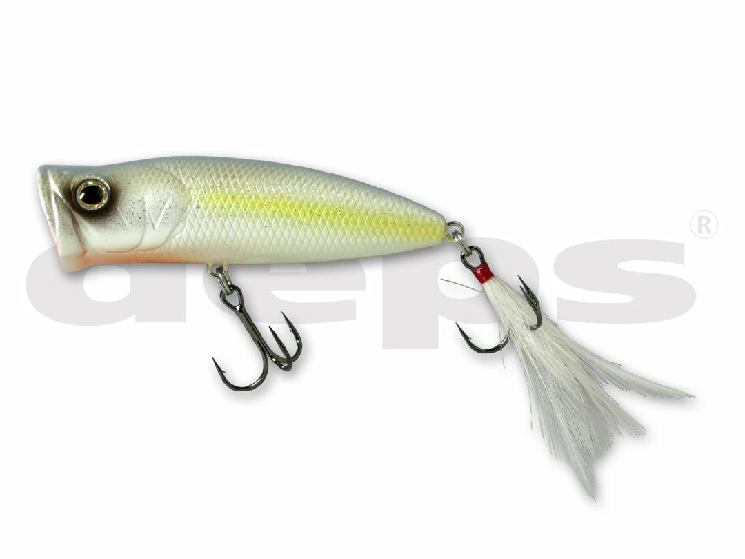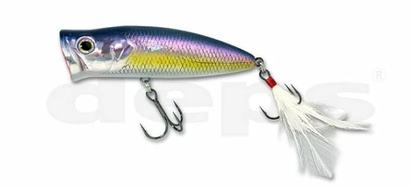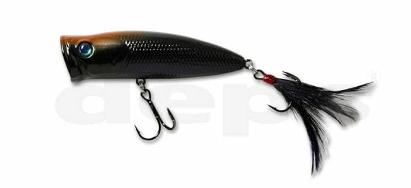 The Deps Pulse Cod is built with a spring weight micro vibe system- a weighted spring mounted inside the body that creates a high pitch “pulse” as the weight trembles in the currents, even when holding still. The flat cup shape of the mouth with bulges on the sides improves straightness and helps the bait float completely horizontal while still, and helps to create the popping splash as it pushes water when it moves across the surface.