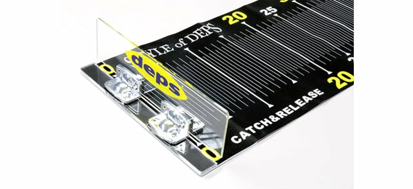 A measure with a flap that makes it easy to adjust the zero position when measuring fish.ย The sheet is a tarpaulin fabric that is resistant to rain and dirt and has high strength.ย All you have to do is spread the measure, raise the acrylic flap and match the mouth of the fish.