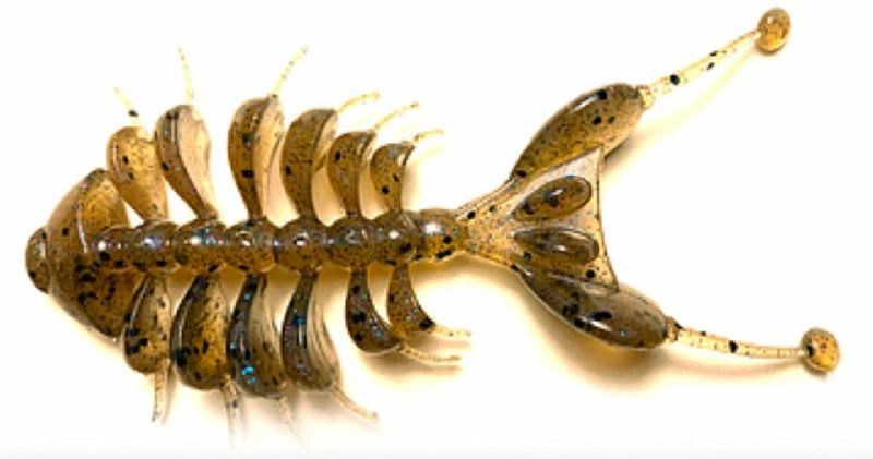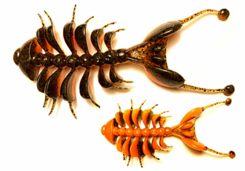 Kasumi Design Dancing Bone Doctor Creature Baits have a unique design that works well in high pressure water or in situations where a regular bait just won’t cut it. The unique body design with all the moving appendages causes a lot of motion in the water to get the attention of hungry fish. With very little work of the rod, all the limbs flutter in the water, making it as easy to fish as it is effective. It moves through the water in an almost hypnotic way. If you’re looking for a jig trailer or a versatile bait that you can fish in different ways, try a Kasumi Design Dancing Bone Doctor.