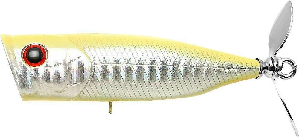 The new Lucky Craft T-Splash 70 is a combination of the G-Splash and the Wake Tail, and is great when a little extra noise and action is needed when fishing for schooling fish. It is also great when fishing around shallow docks because of the extra noise created with the prop. This bait will bring fish up from deeper water.ย The T-Splash 70 has the ability to be worked a little faster. The T-Splash 70 can also be more stationary when fished on stumps or logs. When fishing regular poppers, the baits donโt stay in the strike zone for long, making catching fish difficult. The prop on the T-Splash 70 allows for drag and holds the bait in the strike zone longer.