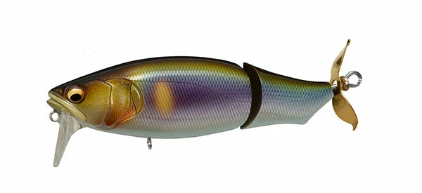 The Megabass i-LOUD is a jointed topwater prop bait which showcases the Rudder Action Balancer System (PAT.P) of the i-JACK for devastating action and sound. Housed in a new concept wakebait/propbait designed by ITO ENGINEERING, the RAB System emits a resounding ‘knock’ as it throws its weight from side to side, giving off a strong sonic presence as it helps power the outsized action of Megabass i-LOUD ’s jointed body. Rear prop adds another layer of lively sound, and leaves a bubble trace along the retrieve line. With a large profile, and even larger action and sound,  i-LOUD represents an aggressive approach to activate the feeding modes of dormant monsters, and trigger explosive bites.