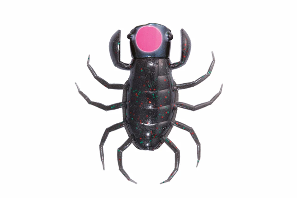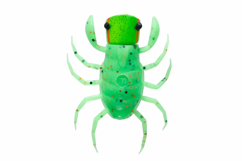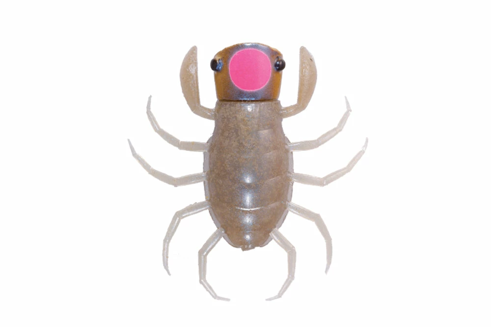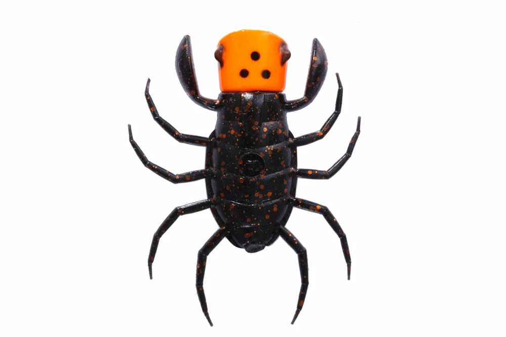 Sweet pop sound and splash generated by cup-shaped head elicits bass from deep range or far back in cover where small silhouette bug lure was never able to show its existence. Upward arms make on-the-spot temptation easy and reproduce drowning bug. The four pairs of legs float on the water surface, and generate a complex ripples even by a slight shaking. 2 brush guards are the result of consideration of heavy cover fishing and it is arranged straight vertical so when you cut one of them it still guards the centerline of the hook. Downward line eye and hook has the best hooking ability. Thatโs Orikaneโs conclusion after he tested every kind of hooking pattern. It demonstrates amazing power under high pressure condition or against visible bass. It is not limited to the field where bug is the main bait.
