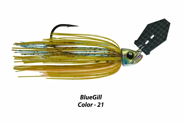 The Shock Blade Carbon Fiber Series elevates your vibrating jig performance to a new level. The blade is manufactured from Carbon Fiber, a cutting-edge space-age material that is lightweight, super strong, and used in specialized, high-performance products such as race cars and aircraft. Picasso’s unique downsized coffin shape ‘lightning blade” provides a super-fast, tight swimming action with an intense rapid fish attracting vibration. With the smallest turn of your reel handle the blade responds almost instantly and the action begins. Constructed around Picasso’s popular Smart Mouth Plus jig head with its concave belly that gives an added “wobble” action that fish can’t resist. The double bait keeper, one on the collar and a wire barb on the hook shaft prevents slippage and will keep your soft plastic secure cast after cast. Equipped with a super-strong 3X Strong Mustad Ultra Point Hook that assures good hook penetration that will not open on the set and can handle big fish. The super-soft silicone skirt material creates fish-attracting undulation that is comparable to living rubber material.