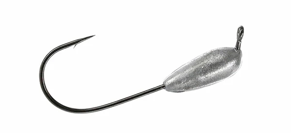 Strike King designs the best jig head for rigging and dragging a tube. The weight forward design and 60 degree black nickel gamakatsu round bend hook are perfectly made for use with a tube of varied styles and hollow bodies swimbaits. Simply insert the jig head into the hollow tube and push forward until the eye of the jig pokes through the plastic; then tie your favorite know for hold.ย