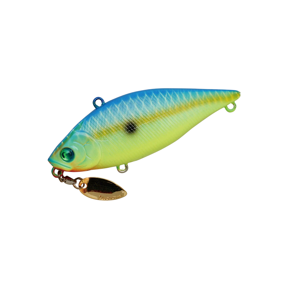 The Valley Hill LV500GPย is a hybrid lipless crank that features a bladed lip to keep the bait lower in the water colum and in the strike zone longer.ย ย Due to the vibration of the body, the rotating blade sways irregularly, achieving a higher flashing effect.ย With a high-speed retrieve with a moderate pitch, the resistance to swim is lost to the rotation resistance of the blade, creating a moment when the lure pauses, creating a triggerย for bass to strike.ย The high frequency rattling sound increases its appeal to even the pickiest of bass.ย