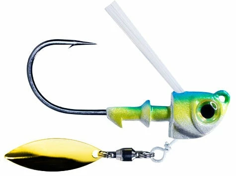 Warbaits Underspin is built withย Warbait’s Unique Head Shape, 3D eyes, Mustad UltraPoint Hook, Angled Wire, Premium Stainless Steal Ball Bearing Swivel, Premium Stainless Willow Blade, Collar/Spike keeper.