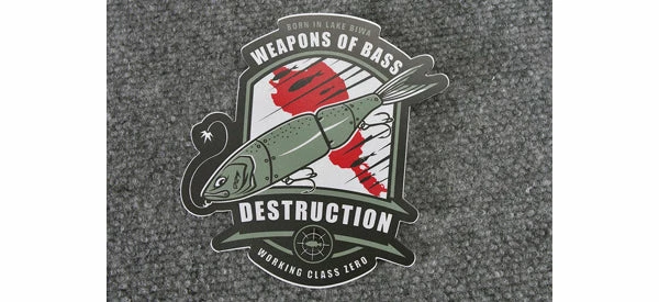 Show no mercy! Working class zero holds nothing back when it comes to big bass. Show your support and enthusiasm with their Weapons of Bass Destruction sticker decal. Put it on your boat, the windshield of your car, or your tackle box.